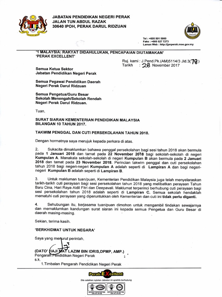 Surat makluman cuti perayaan peruntukkan kpm sepanjang tahun 2019 sekolah kebangsaan st mary. Rasmi dari kpm cuti perayaan 2017 admin december 17, 2016 alhamdulillah, akhirnya selepas lama menanti dan dengar dari pelbagai khabar yang tidak sahih, pihak kpm sendiri telah mengeluarkan surat siaran berkaitan dengan cuti perayaan dan takwim persekolahan bagi sesi 2017. Cuti perayaan 2017 rasmi daripada kpm thursday, 15 december 2016. بِسْمِ اللَّهِ الرَّحْمَنِ الرَّحِيم (dengan nama allah yang maha pemurah lagi maha penyayang) Takwim cuti sempena perayaan 2018. Cuti sekolah dan perayaan 2019 kpm kronis g. Sila rujuk kalendar cuti umum dan cuti sekolah 2017 untuk membantu anda merancang percutian sekeluarga. 3 cuti perayaan yang diperuntukkan oleh kpm adalah tahun baru cina, hari raya aidilfitri dan hari deepavali. Semoga perkongsian kalendar cuti sekolah 2018 akan memudahkan anda sekeluarga dalam merancang aktiviti sepanjang tahun 2018. Berikut adalah takwim persekolahan 2017 yang telah dikeluarkan oleh pihak kementerian pedidikan malaysia bagi sesi persekolahan 2017. Cuti umum sekolah 2019 kpm perokok o. Cuti umum, cuti kelepasan am persekutuan, cuti kelepasan am negeri dan cuti persekolahan malaysia bagi tahun 2017. Merujuk kepada surat siaran kpm.